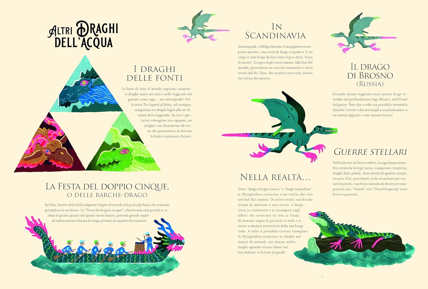 I draghi, creature sospese tra l’immaginario e il reale, spettacolari e terrificanti al tempo stesso, sono protagonisti indiscussi di leggende popolari, saghe fantasy, serie televisive e videogiochi. Questo volume ci accompagna in un viaggio ricco di emozioni e stupore alla scoperta di questi esseri attraverso gli elementi della natura (draghi dell’acqua, del fuoco, della terra e dell’aria), alla ricerca dei loro rifugi nascosti e delle terribili tracce che lasciano dietro di sé.